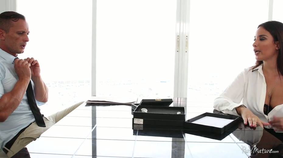 French milf Anissa Kate seduces her boss and they make love on white sheets