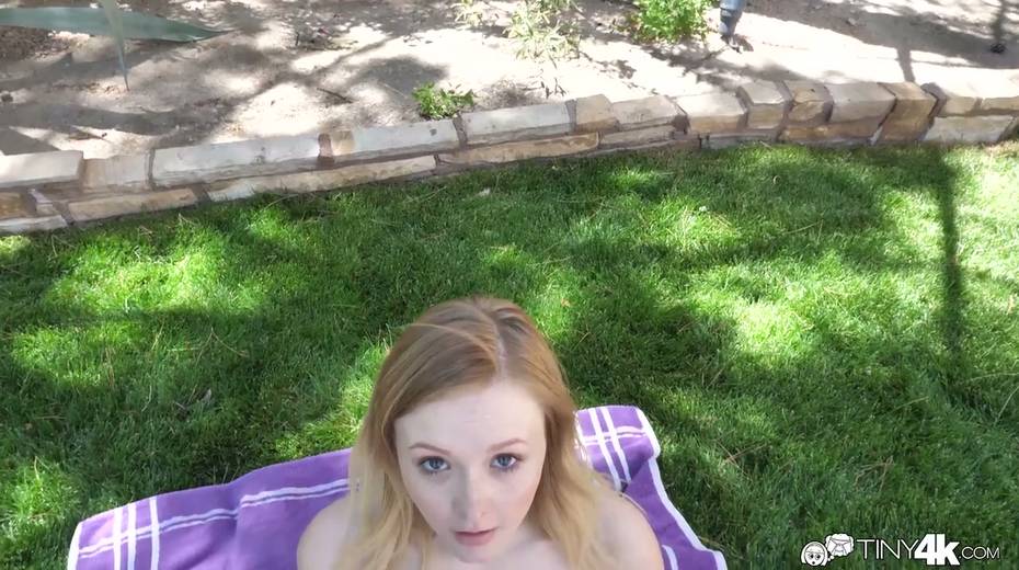 Petite chick Lanna Carter is sucking a dick in the garden
