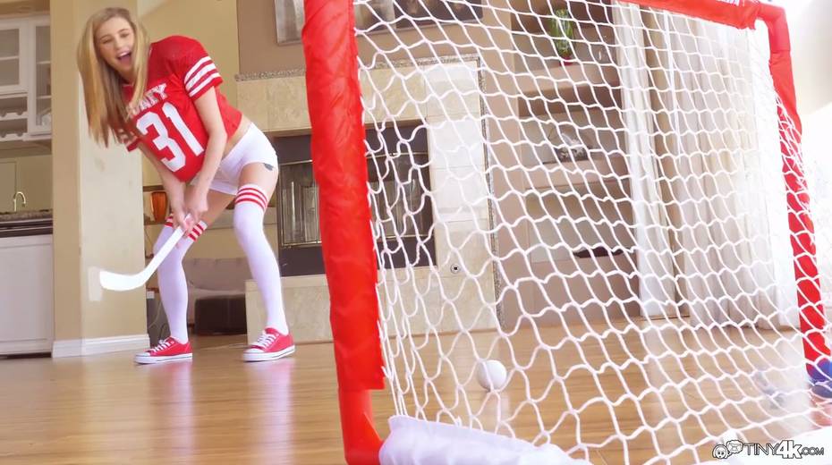 Mischievous teen Carolina Sweets enjoys playing ho?key and gets her pussy fucked