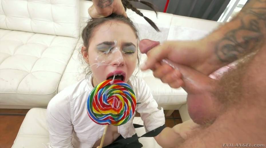 Rude dude fucks sweet chick Lucie Cline and cums on her face