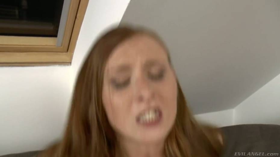 Slender red haired babe Linda Sweet takes a dick in her anal hole in cowgirl style pose