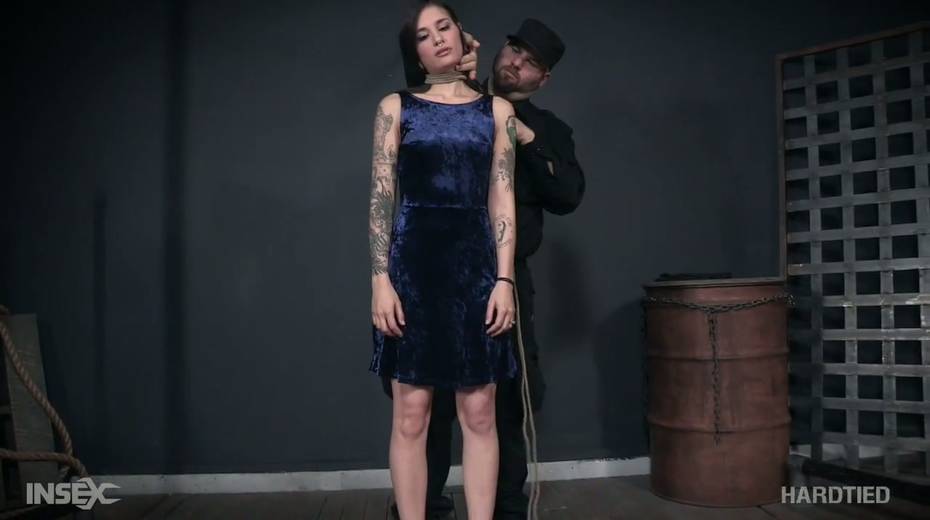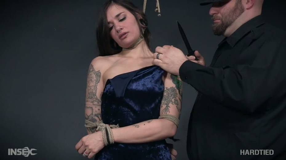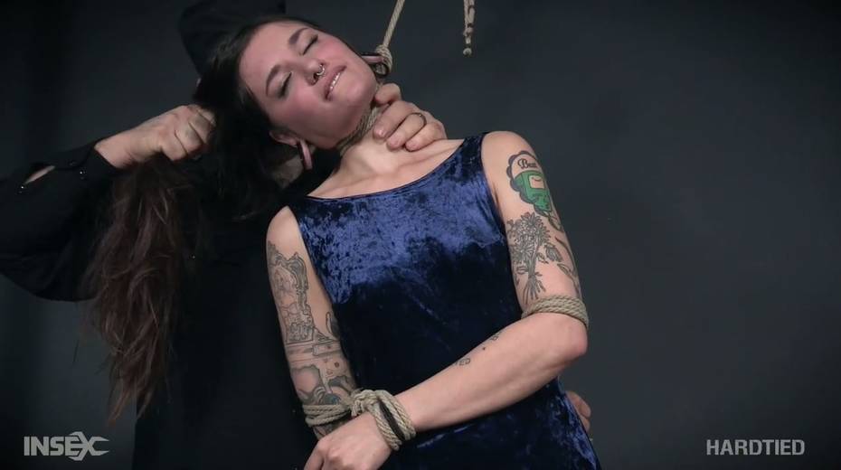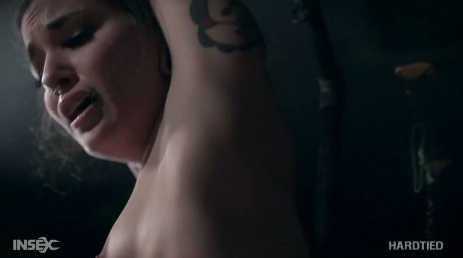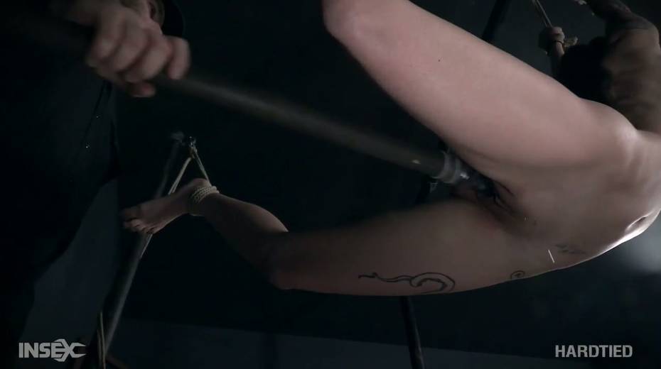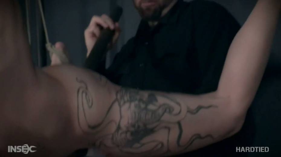 Tied up tattooed bitch Luna Lovely gets her muff punished in the BDSM room