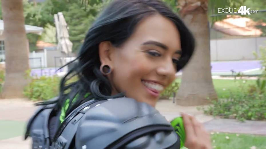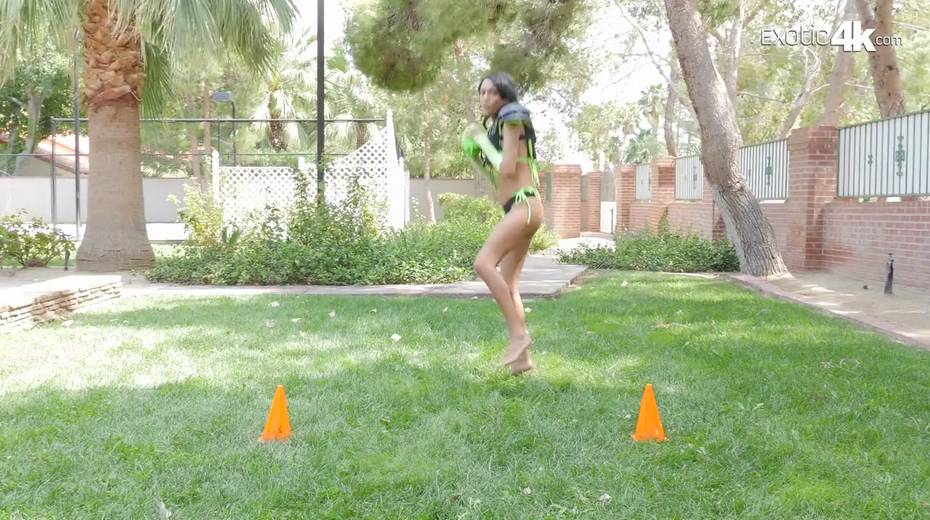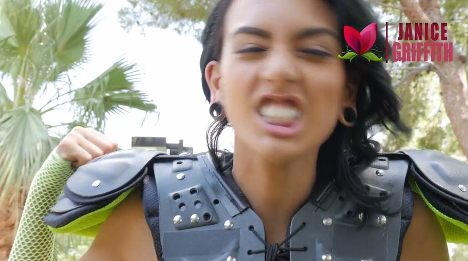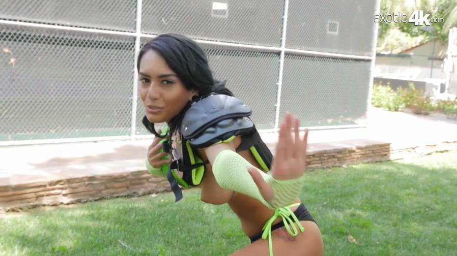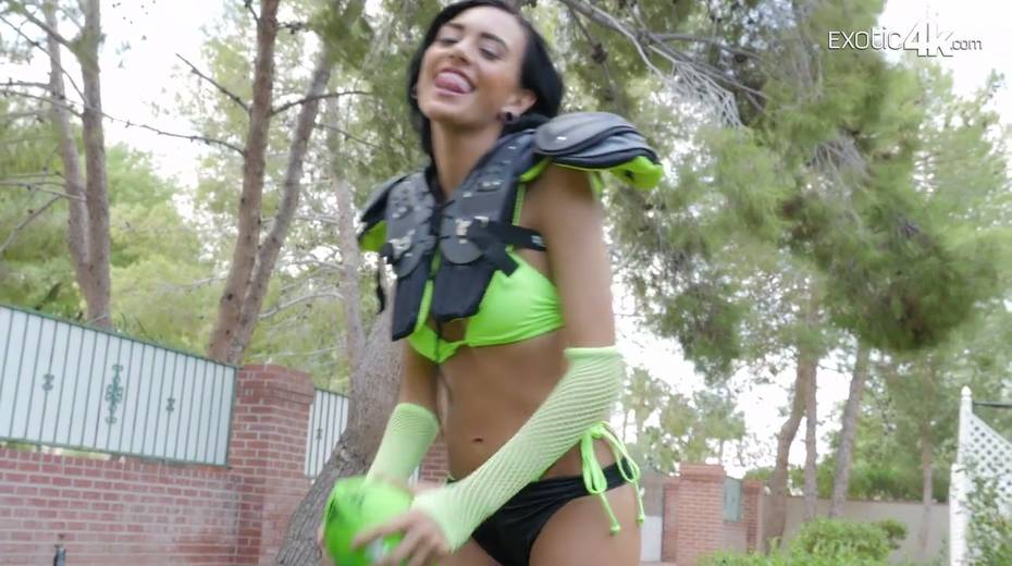 Tiny slim chick Janice Griffith is playing American football and gets her pussy stretched