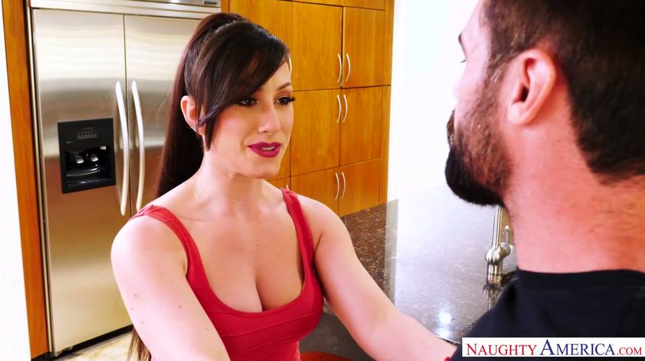 Sexy housewife Jennifer White gives a blowjob and gets her slit slammed