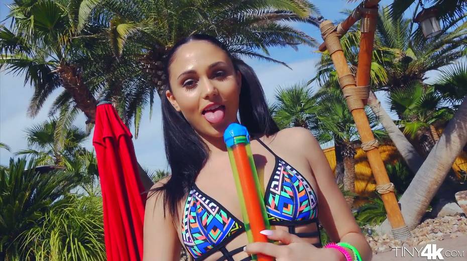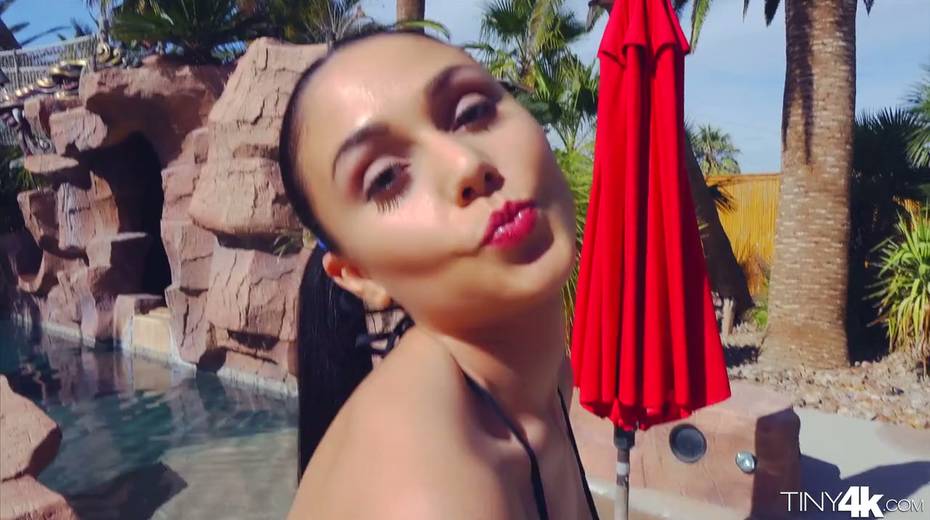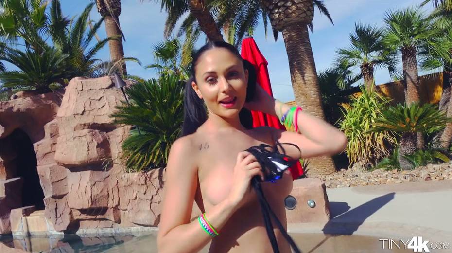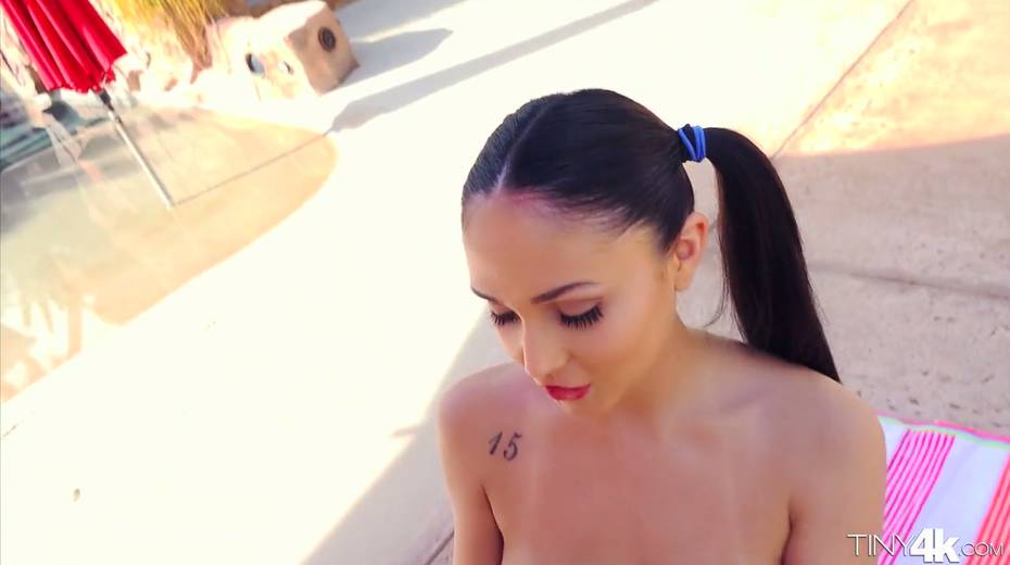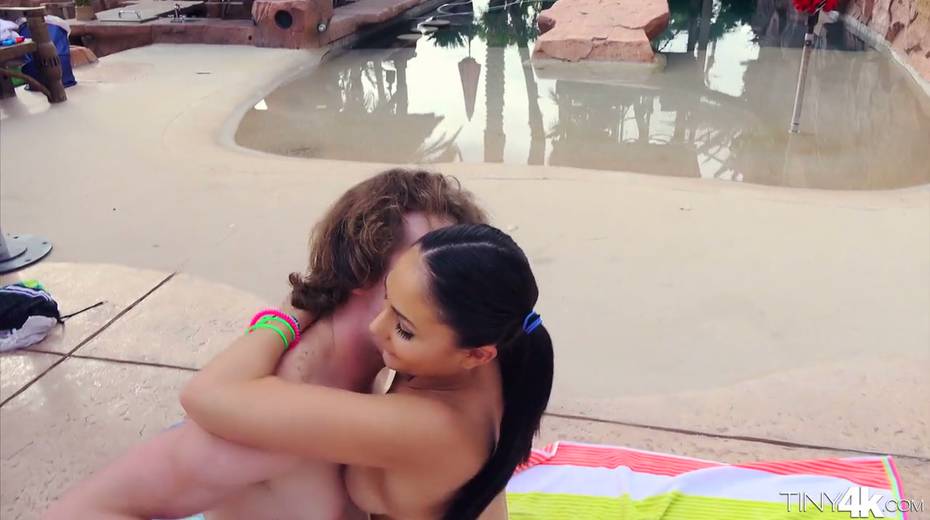 Playful chick with pigtails Ariana Marie gets laid by the poolside