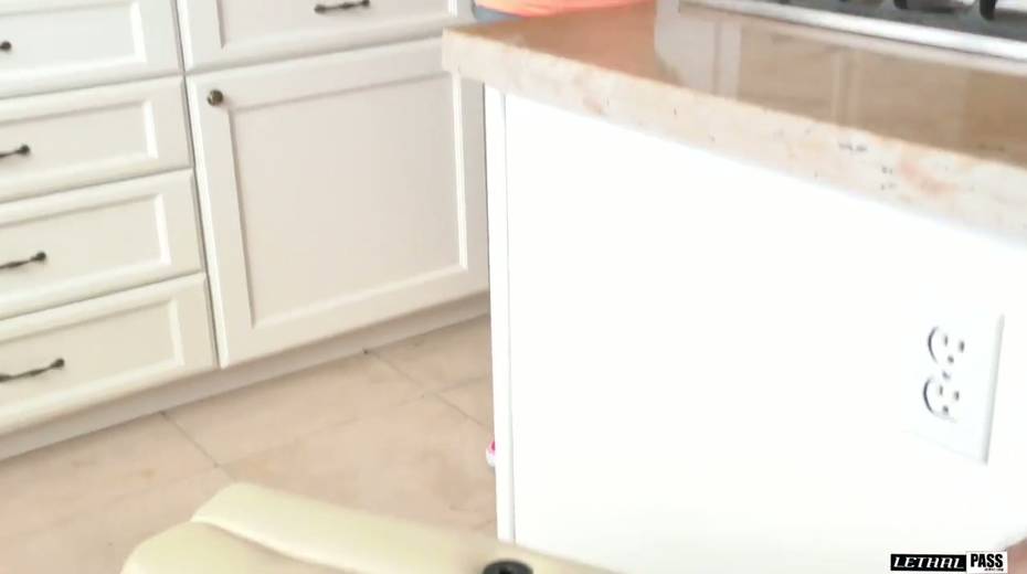 Sweet young housewife Hannah Hays gets her pussy fucked in the kitchen