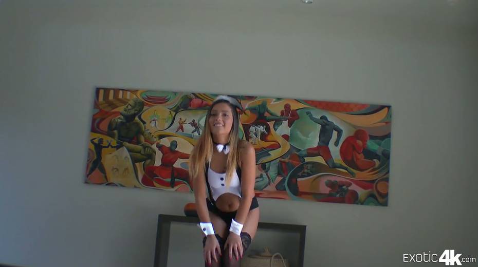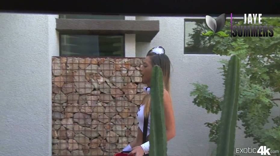Tanned hottie Jaye Summers is impaled on a stiff penis doggy style
