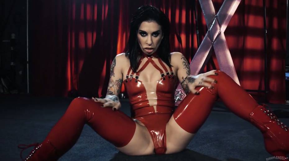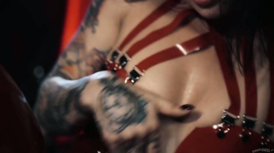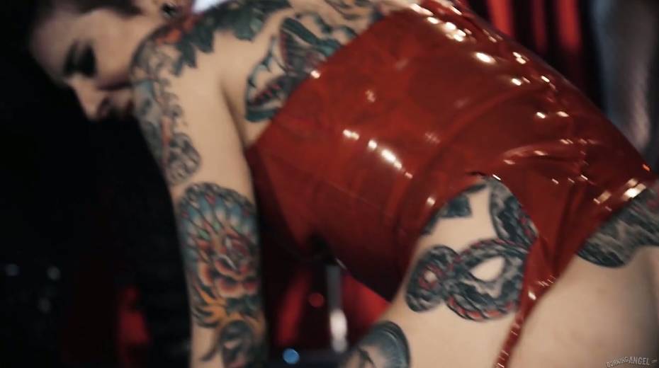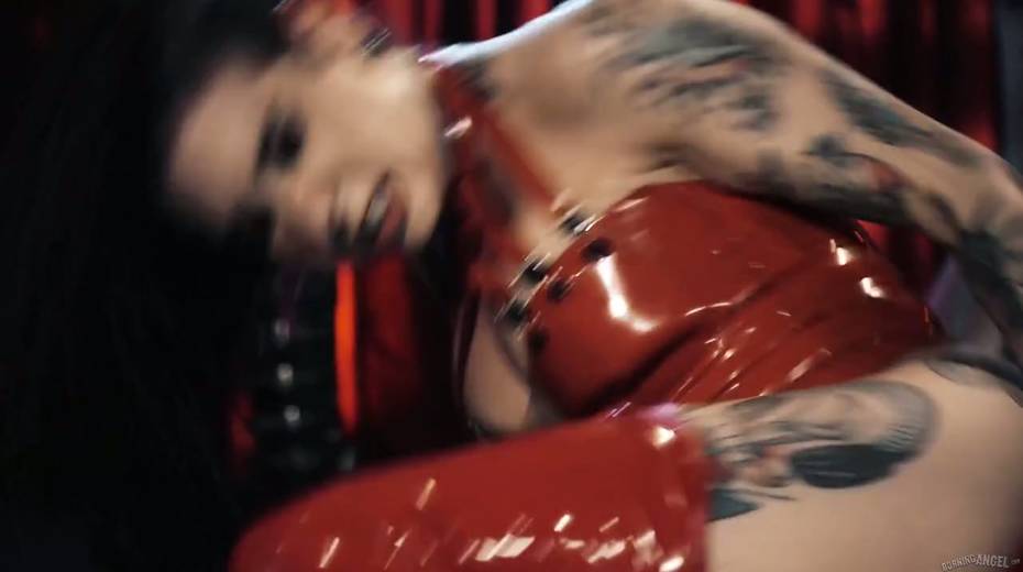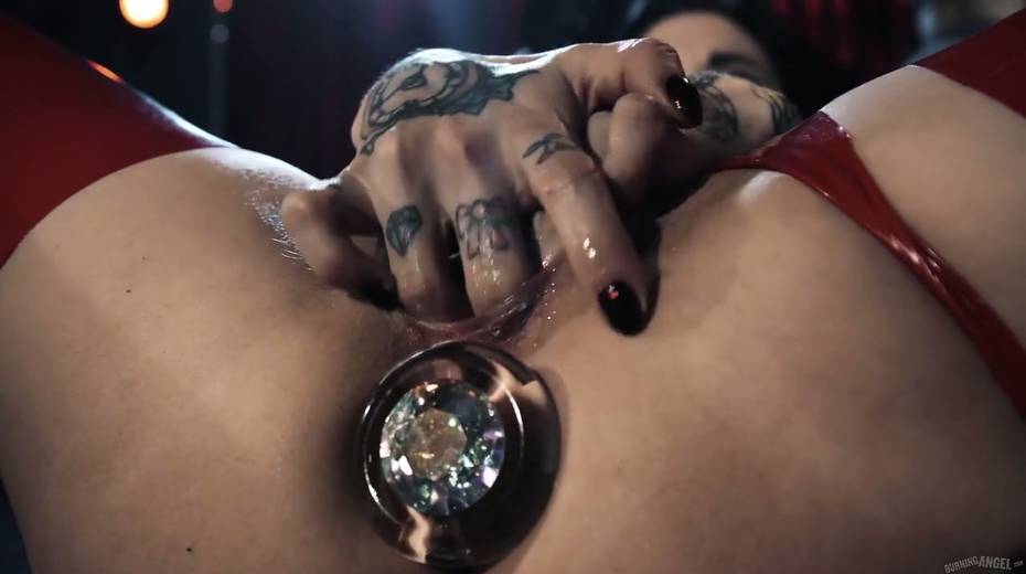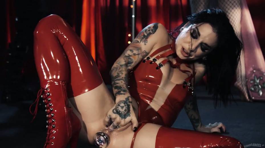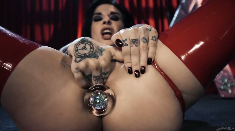 Latex tattooed whore Joanna Angel shows the abilities of her anal hole
