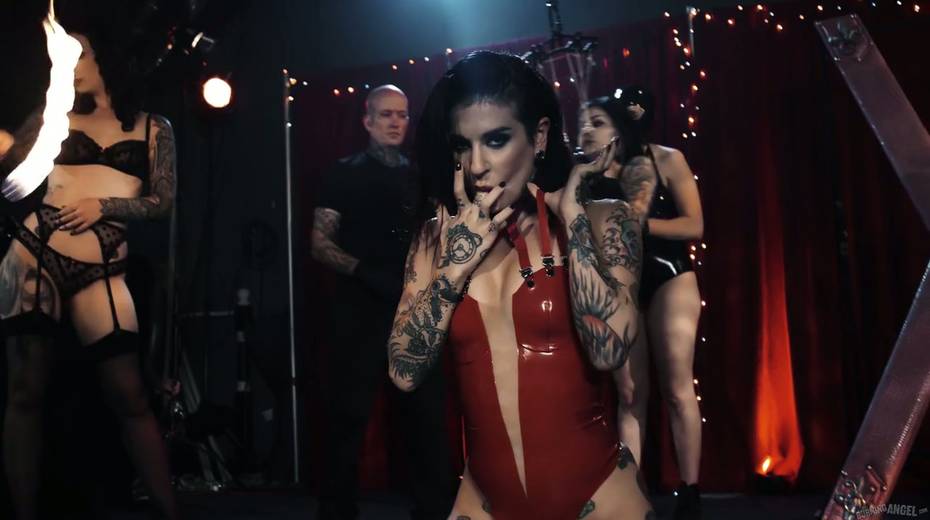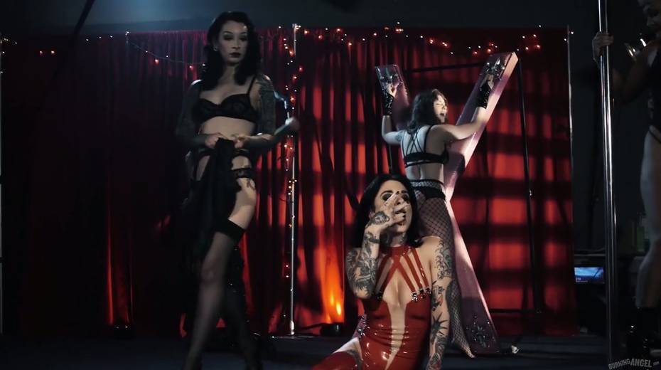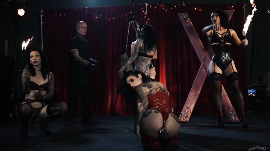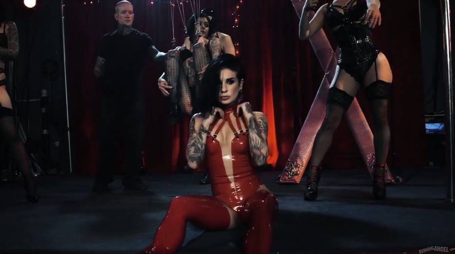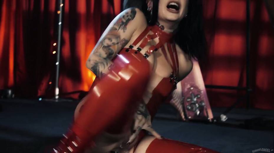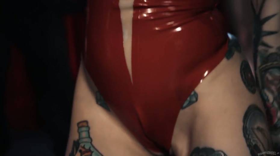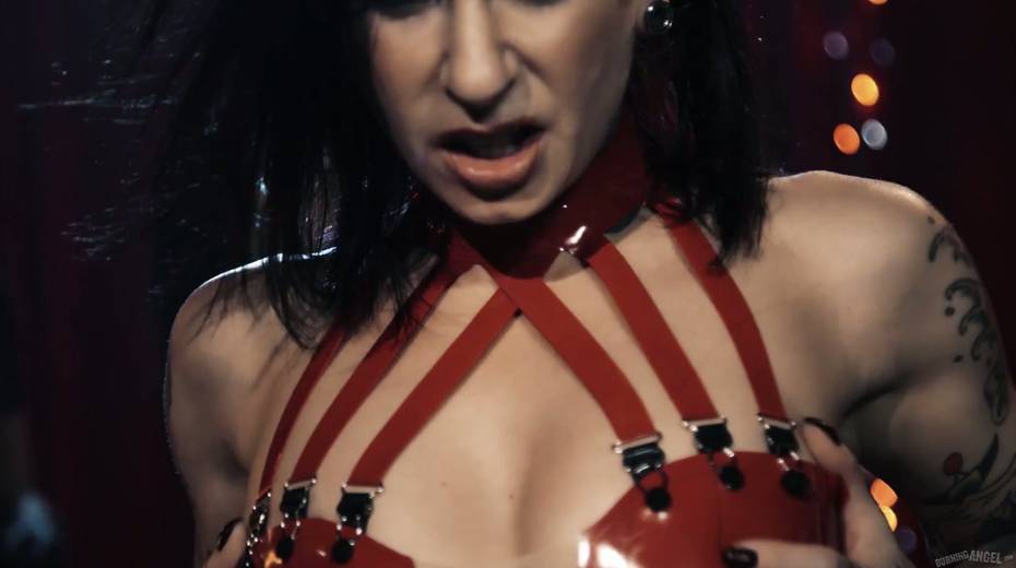 Latex tattooed whore Joanna Angel shows the abilities of her anal hole