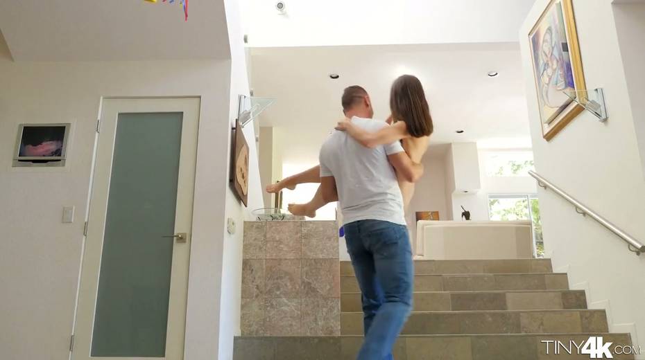 Cute petite girlfriend Lana Rhoades is face fucked by hot blooded dude