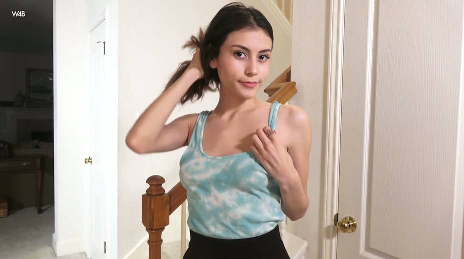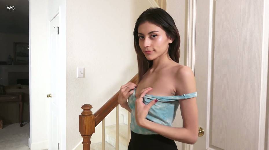 Palatable brunette teen Amelia Pearl finger fucks her tight smooth pussy