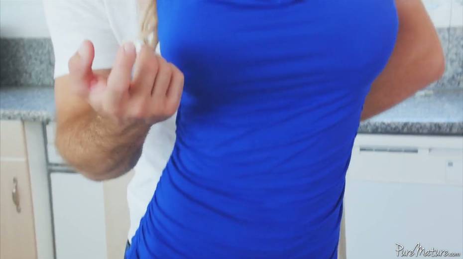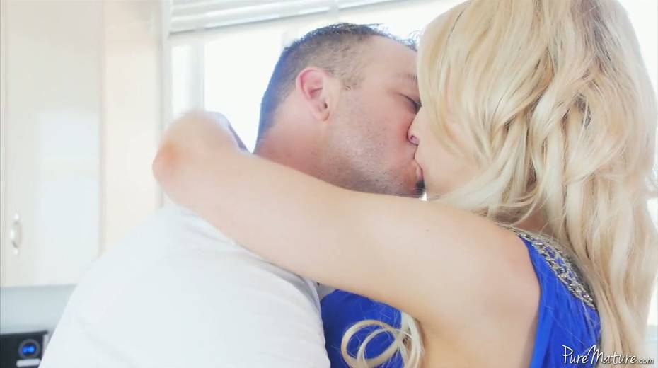 Blue eyed blonde Alix Lynx is making love with her spouse in the kitchen