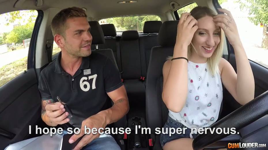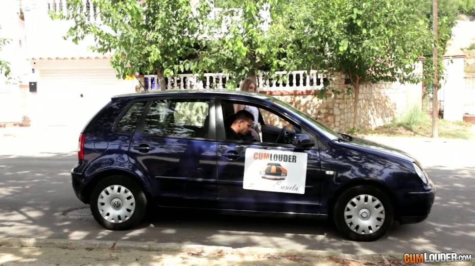 Stupid blonde Yuno Love gives a blowjob to horny driving instructor