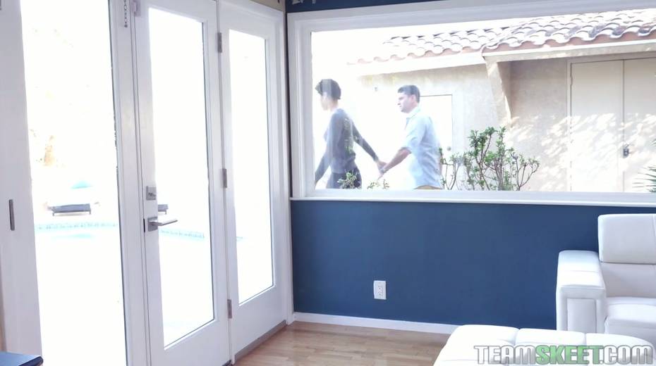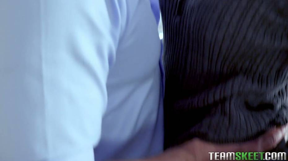 Tall ebony paramour Amethyst Banks takes a white dick in her tight anal hole