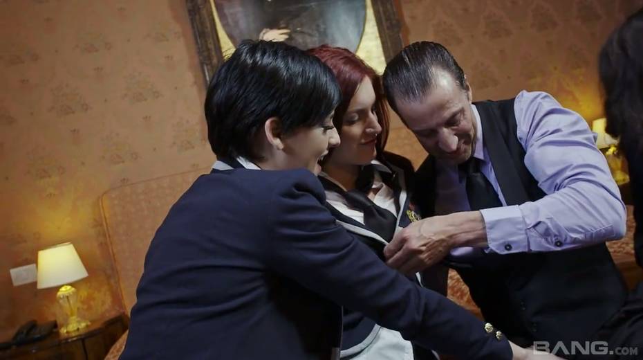 Whorish chick Mira Sunset and her assistant serve a group of perverted dudes