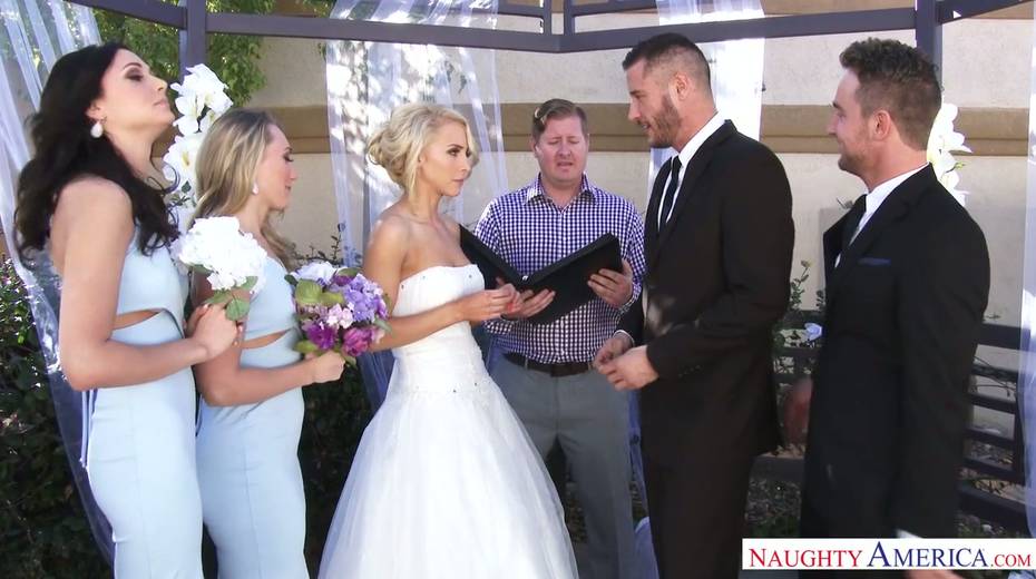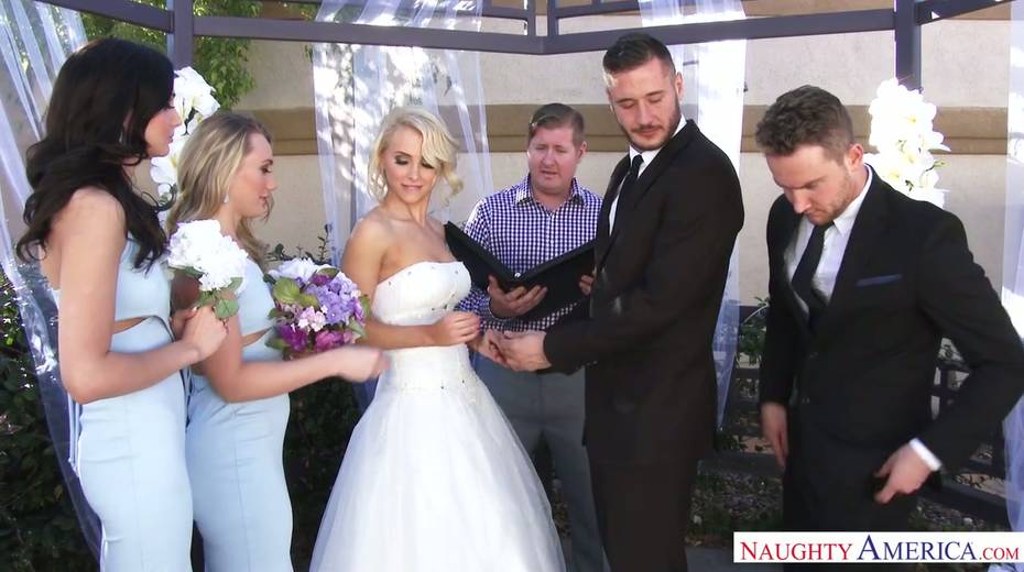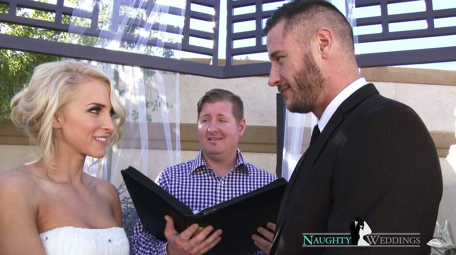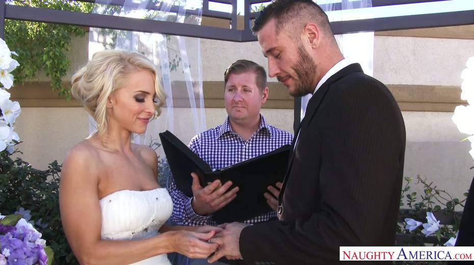 Captivating bride Alix Lynx is making love with her husband soon after the wedding ceremony
