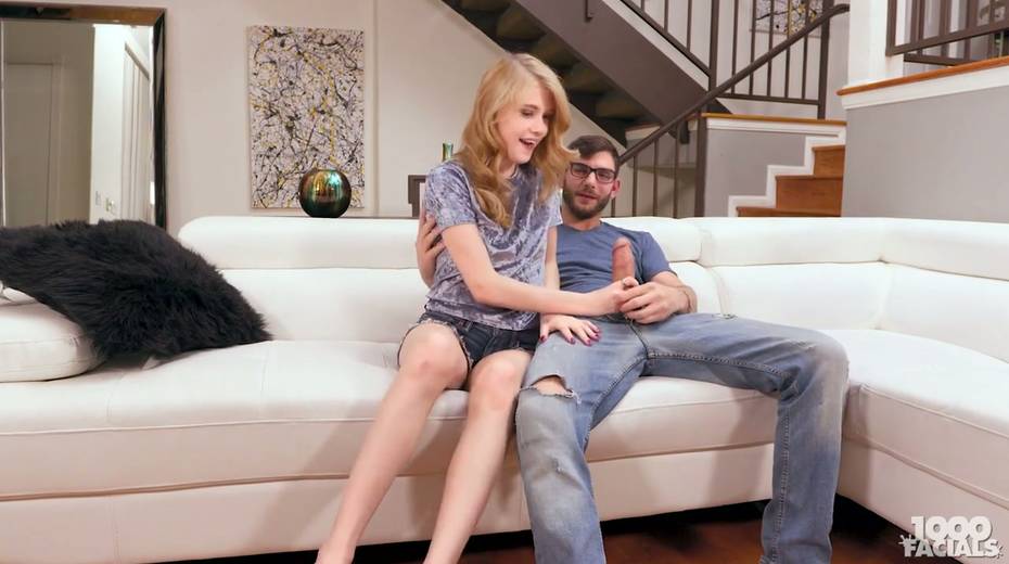 Sweet looking coed Hannah Hays drools over a huge penis of her boyfriend