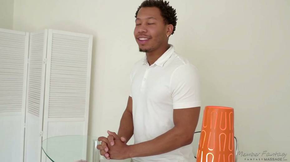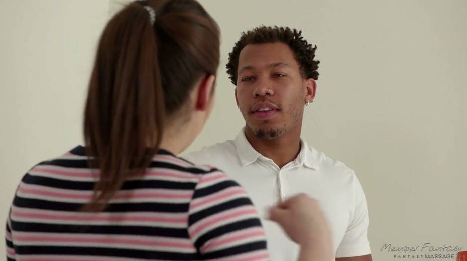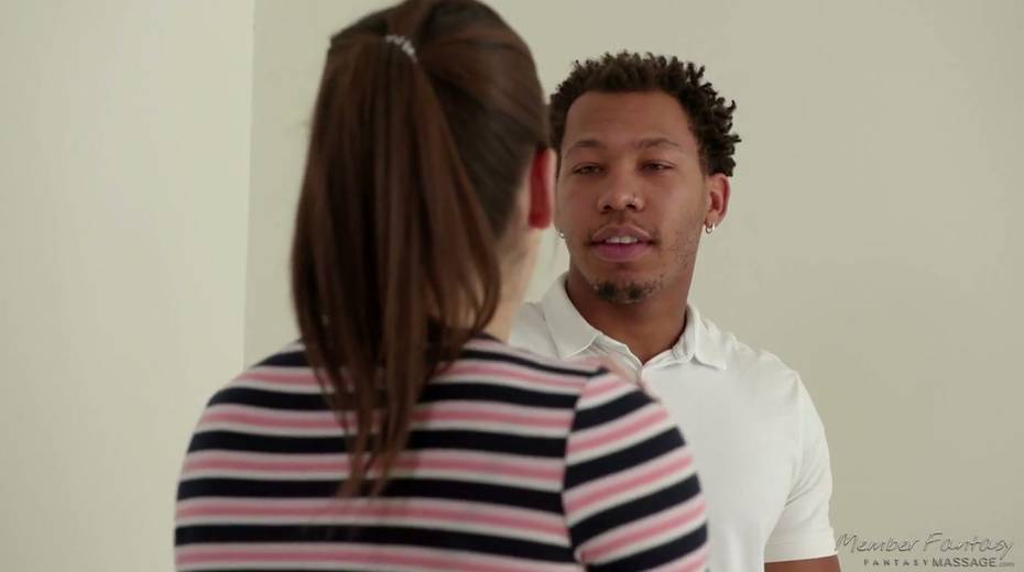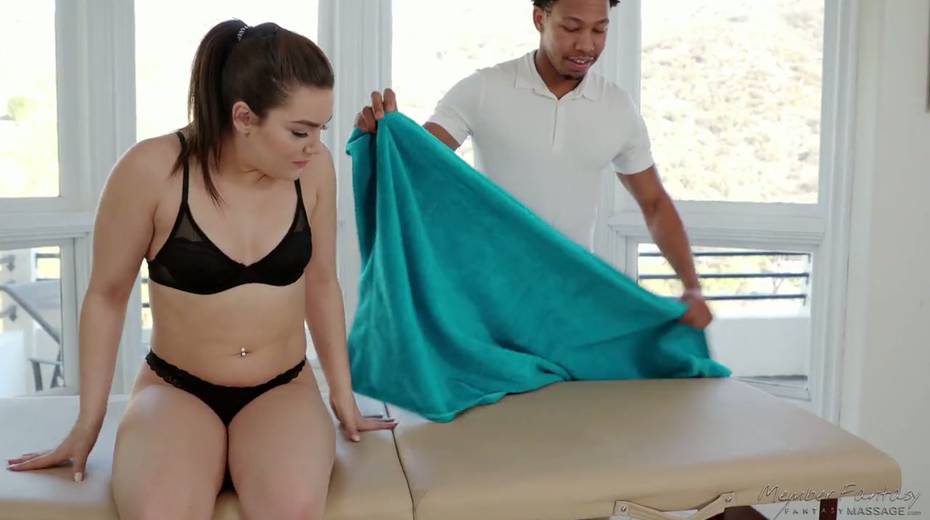Black masseur fucks deep throat and oiled up pussy of sexy white client Kimber Woods