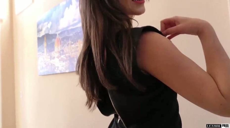 Naughty chick in sexy lingerie Christiana Cinn gives her head before a steamy sex
