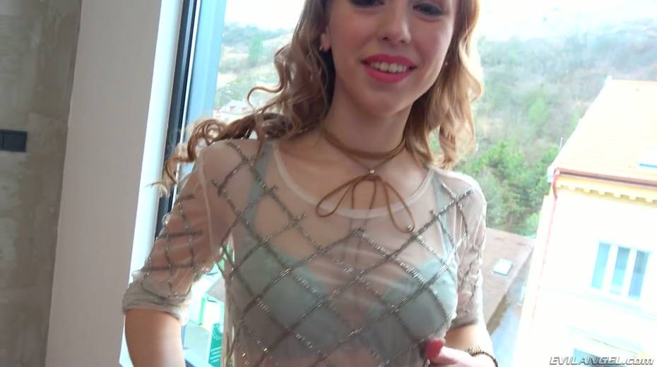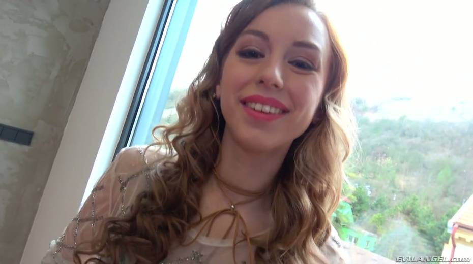 Slutty girlfriend Kira Thorn invites two dudes to fuck her both holes