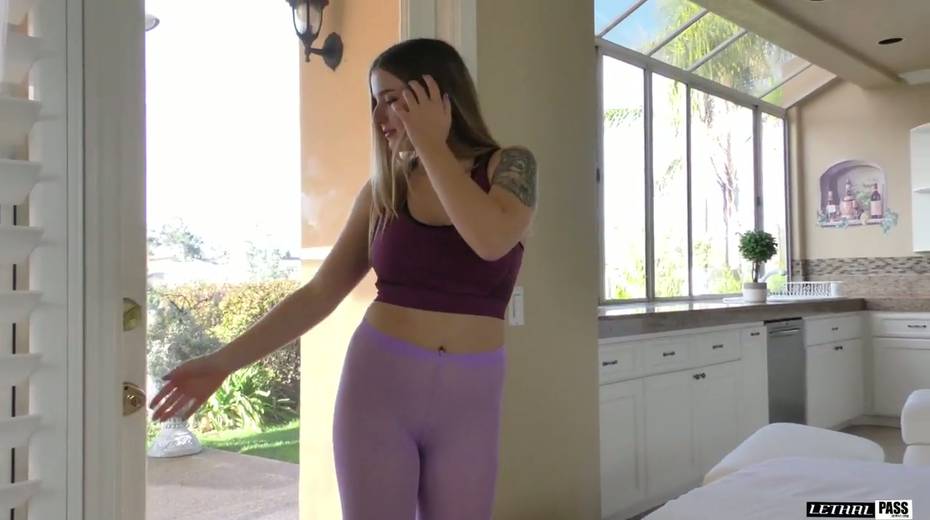 Fitness babe in transparent yoga pants rides a dick like a sex-hungry hoe