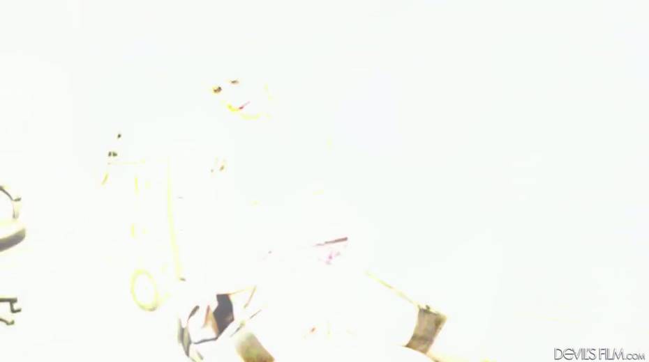 Trashy looking tramp Sarah Jessie is face fucked before a hardcore pussy pounding