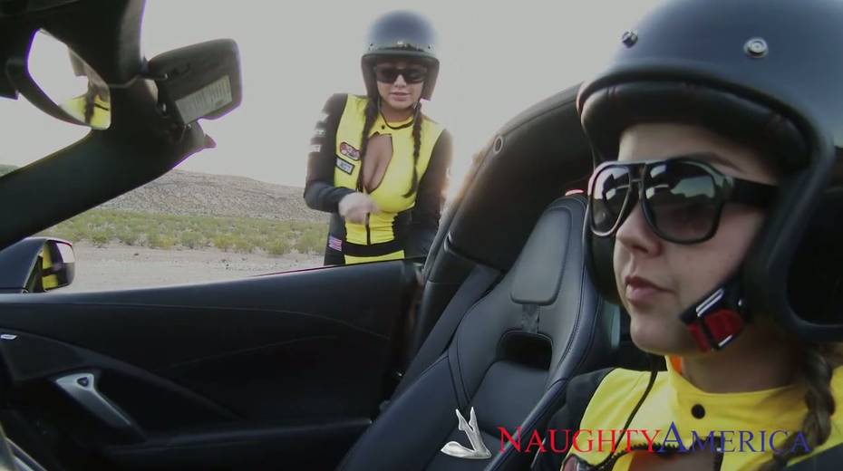 Slutty racer Dillion Harper and her Gf are fucked outdoor by one well endowed dude
