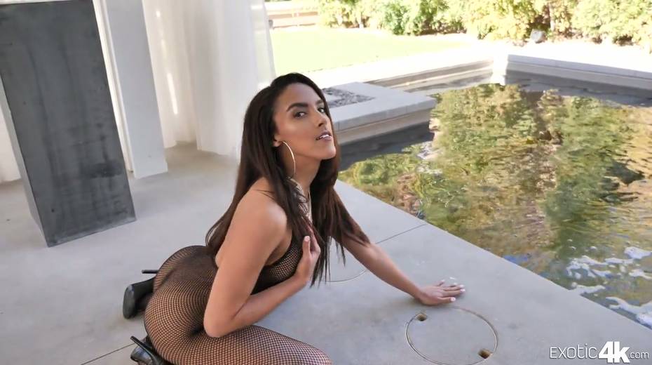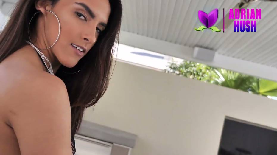 Trashy looking bitch Adrian Hush rips off her fishnets and gets fucked hard