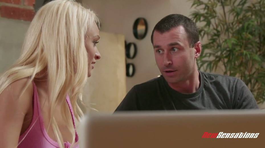 Alluring blond chick Emma Hix takes cumshots in her mouth after a steamy sex