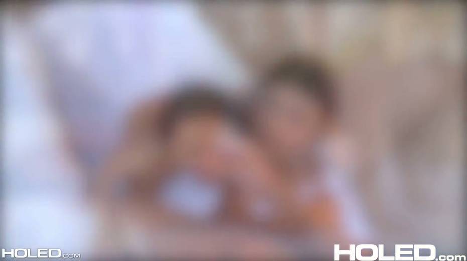 Two nasty gals are skewered with double ended sex toy and fucked by one crazy stud