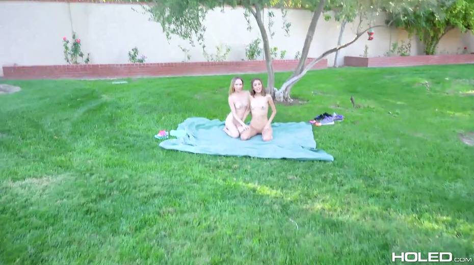 Two fitness chicks Angel Smalls and her GF are fucked in the garden