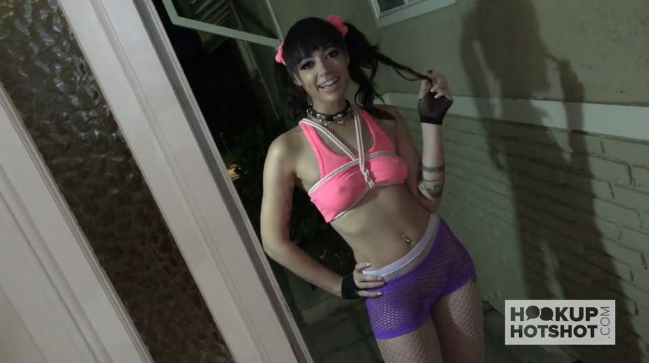 Sassy teen with pigtails Rina Ellis is tied up and fucked hard by one kinky dude