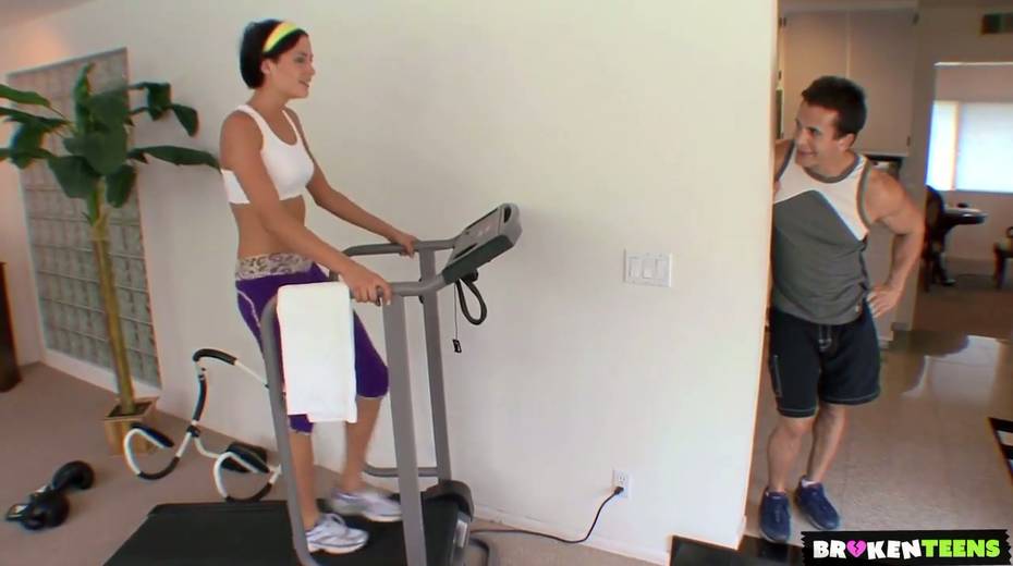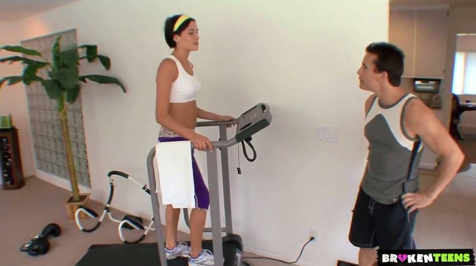 Fitness chick Ashdon James is fucked by horny fitness instructor at the gym