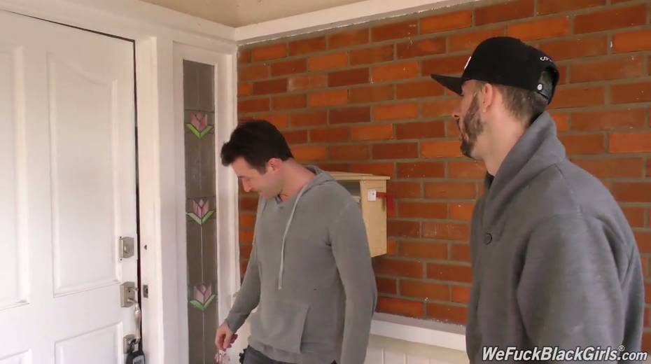 Horny white dudes fuck ebony hooker Ivory Logan and cum on her face