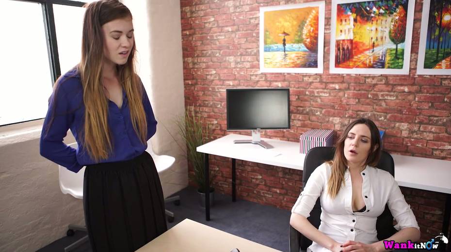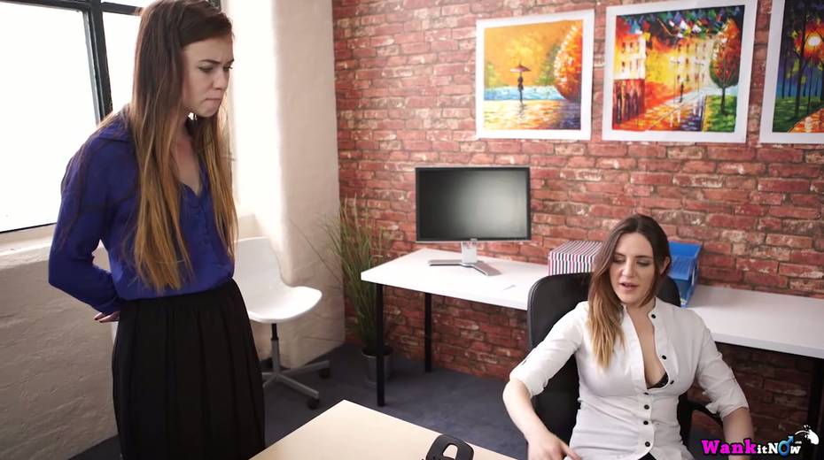 Sluttishly looking secretary Samantha finger fucks lesbian GF right on the table