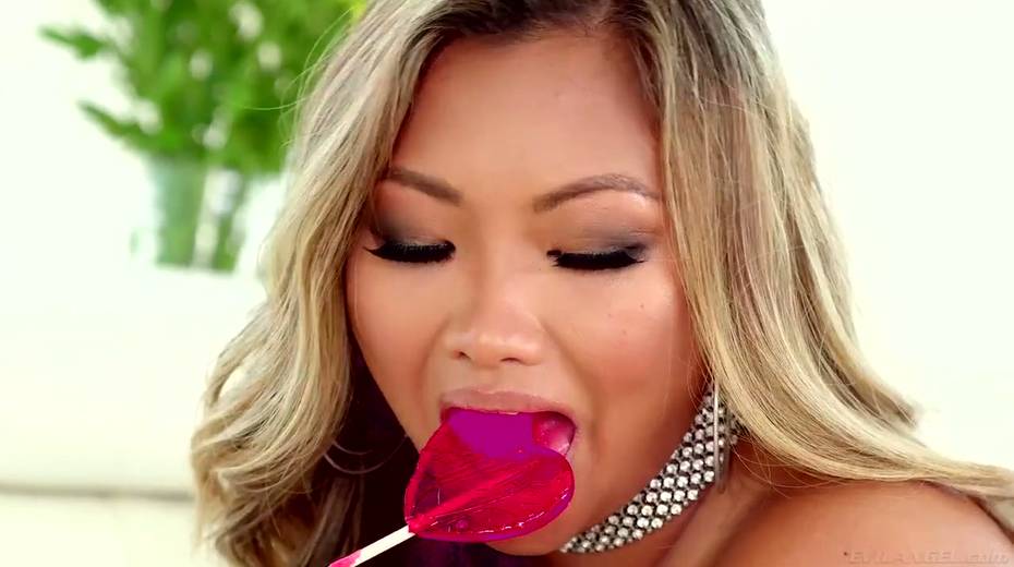 Asian hooker Lana Croft slobbers all over a huge dong and gets messy facial