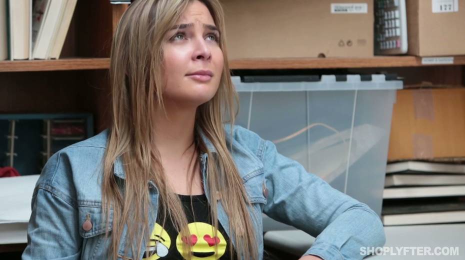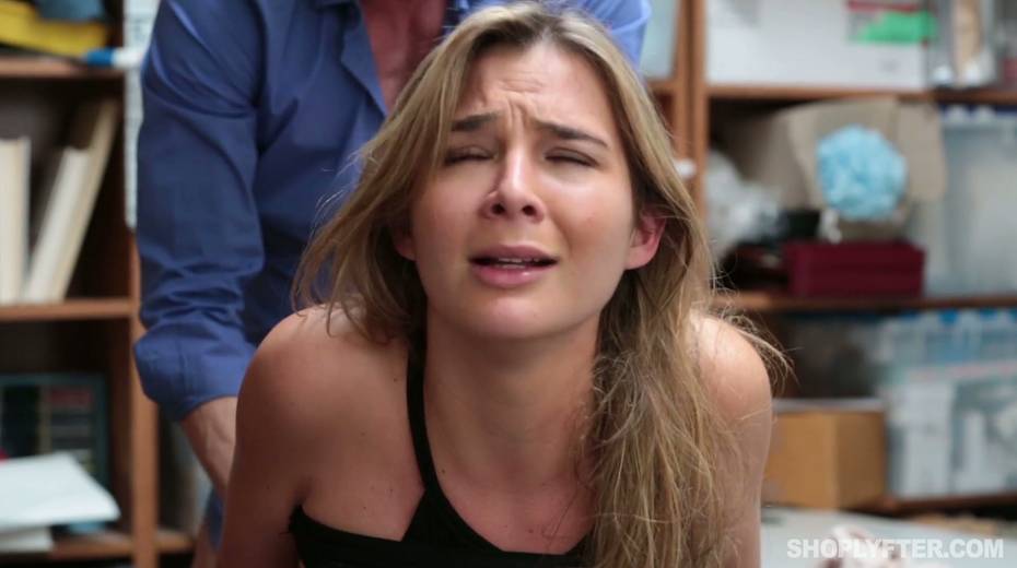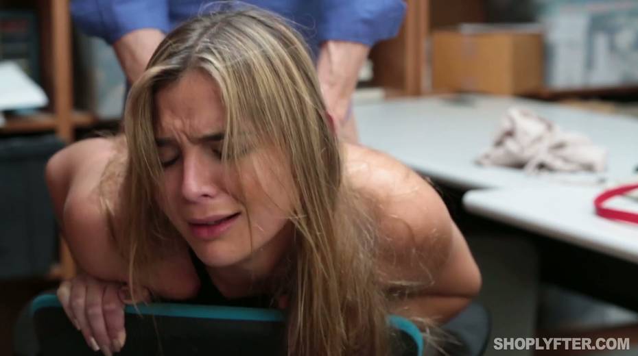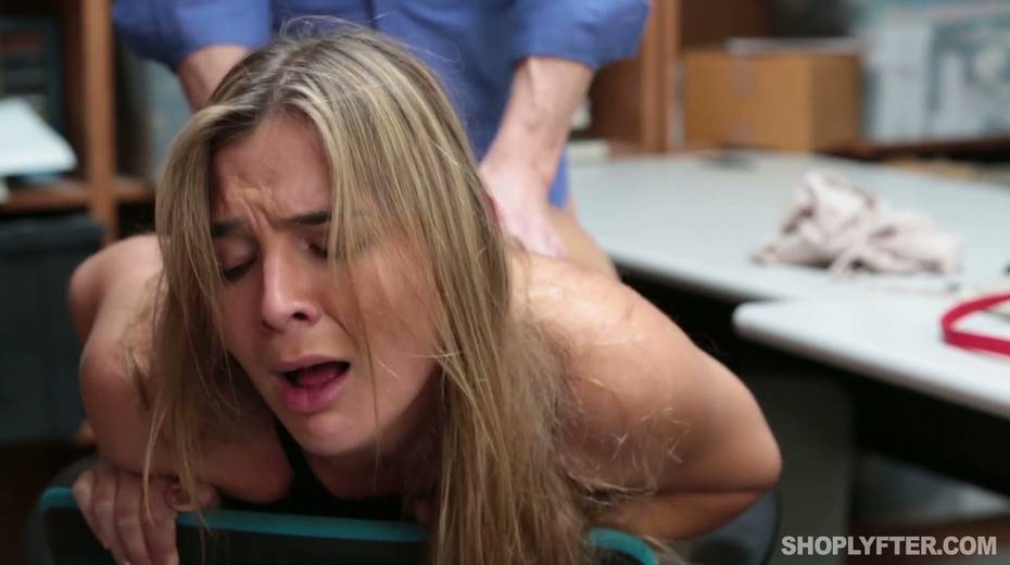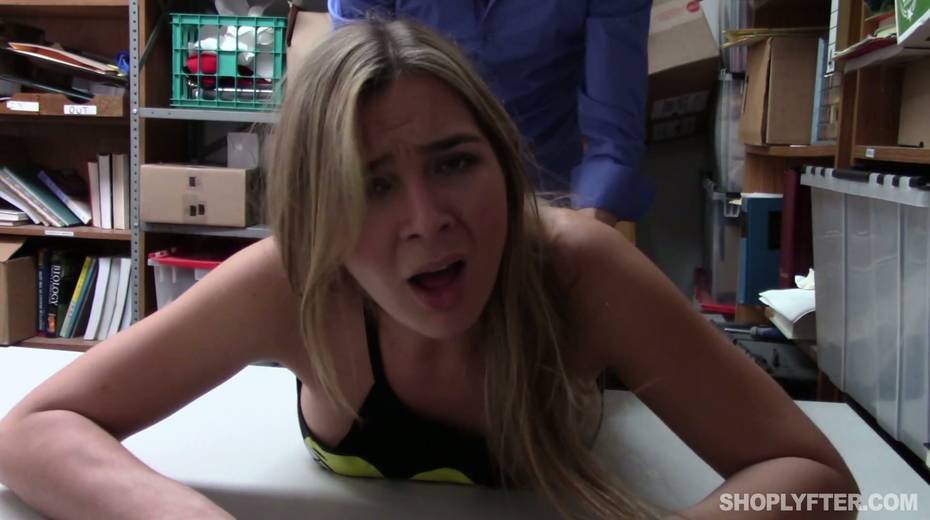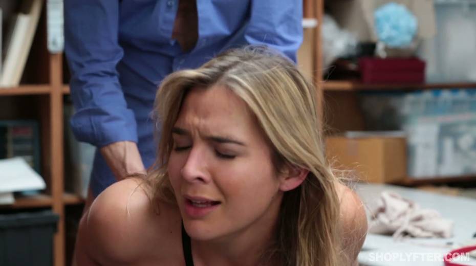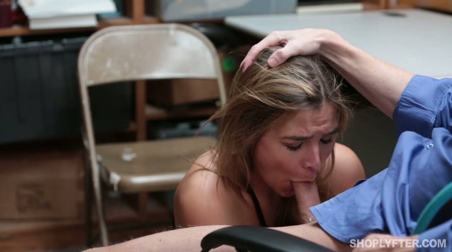 Shoplifting chick Blair Williams gets her pussy and mouth punished in the back room