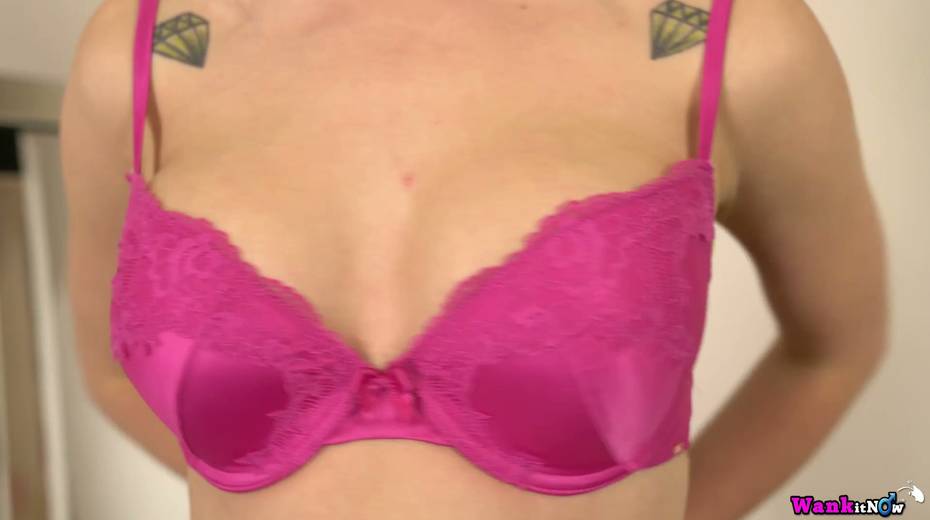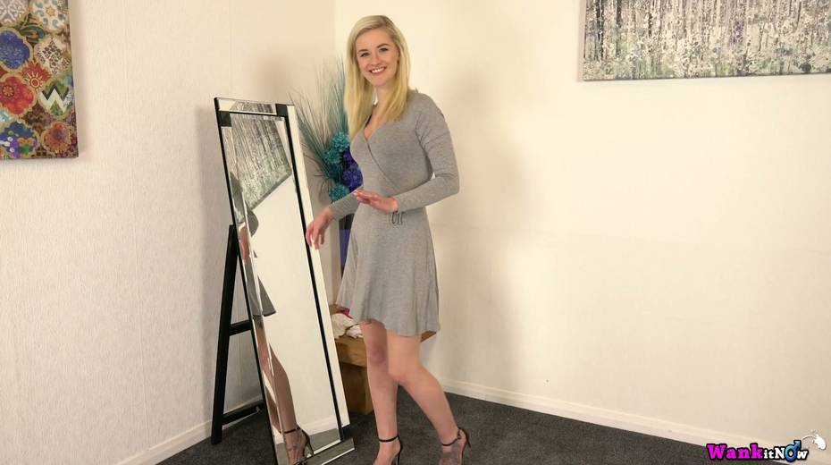 Tempting blondie Gracie pust on her sexy lingerie in front of the mirror