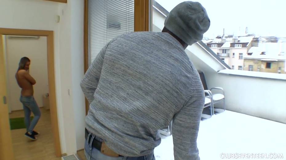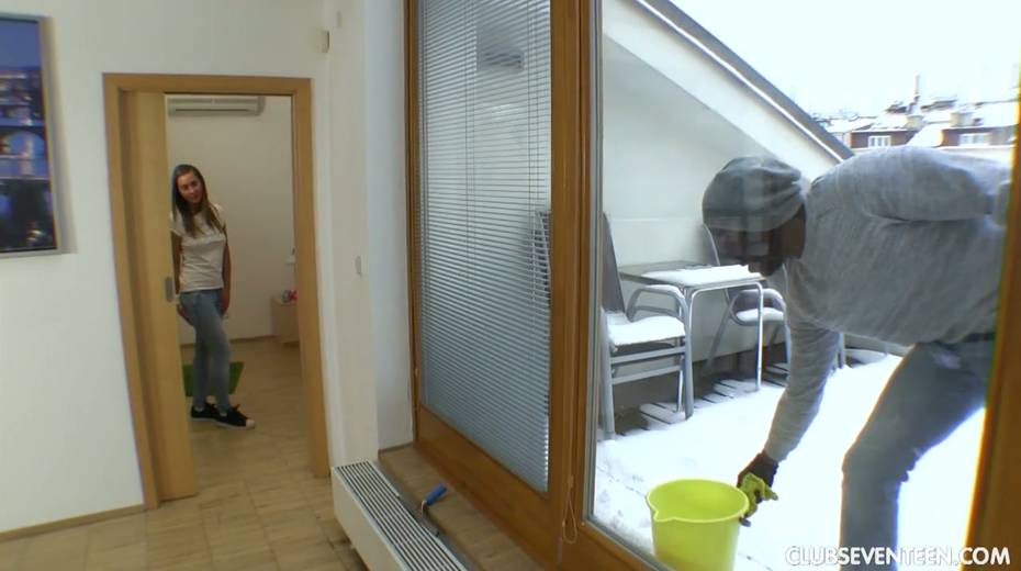 Pretty Czech teen Naomi Bennet seduces well endowed black window cleaner