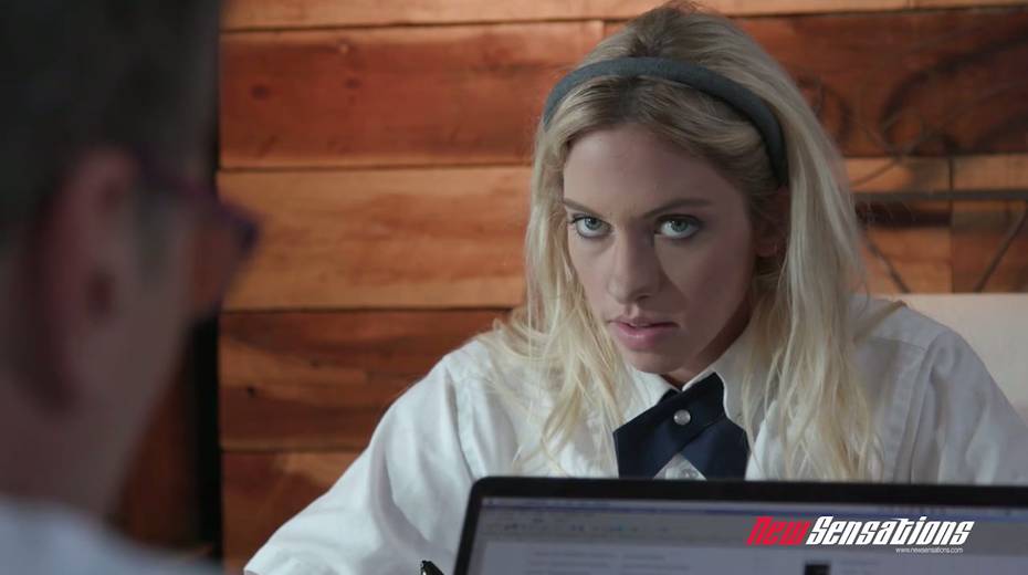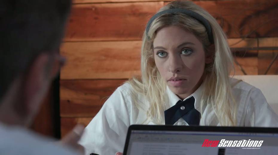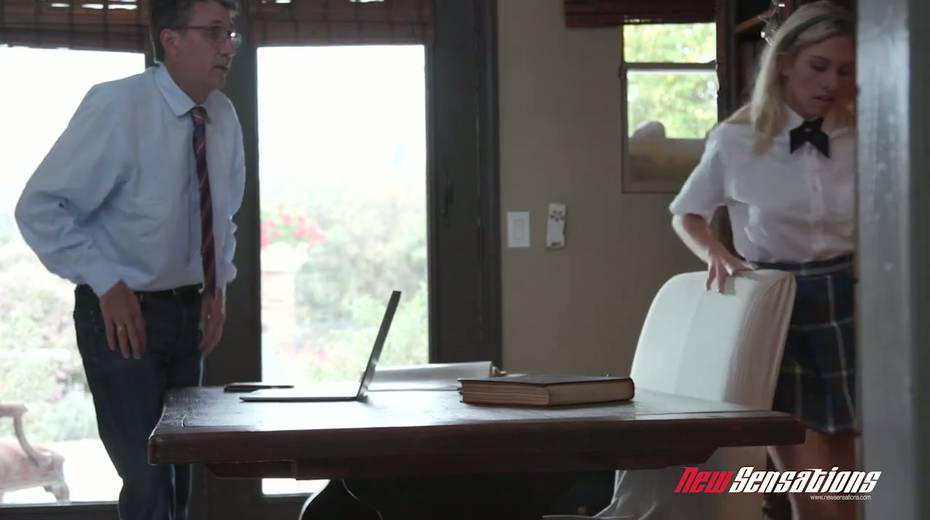 College chick in short skirt Khloe Kapri provokes her step dad to fuck her in the kitchen