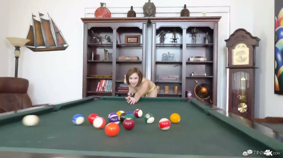 Tiny chick Cadey Mercury is masturbating her twat before a crazy sex on the billiard table