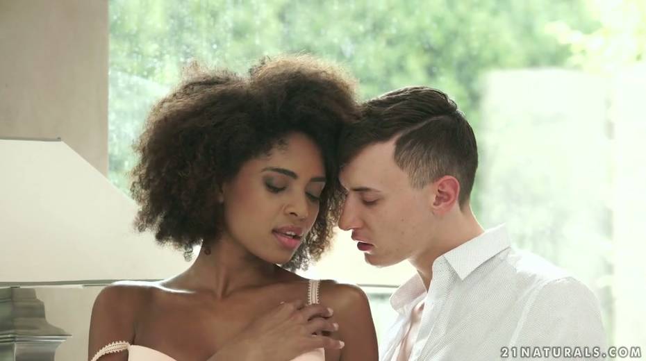 Curly ebony babe Luna Corazon is having crazy sex with her white boyfriend