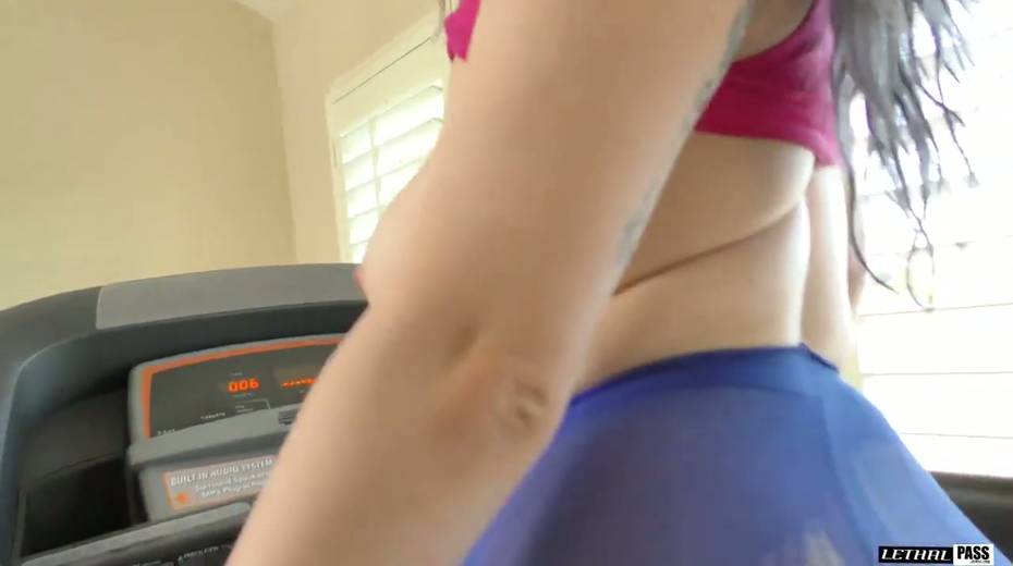 Sport chick in ripped yoga pants Amilia Onyx gets laid after a workout