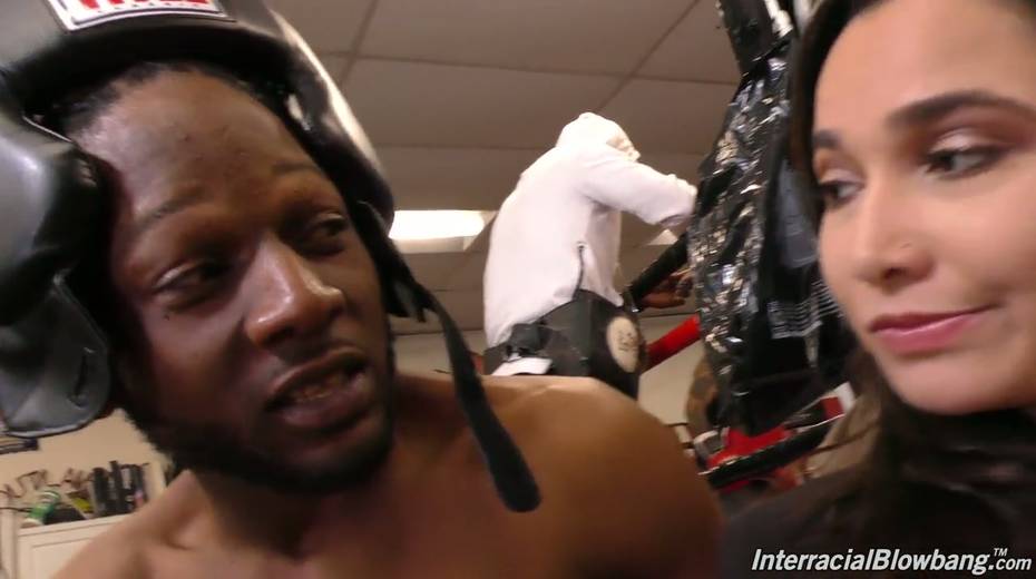 White chick Karlee Grey takes part in crazy blowbang clip ending up with bukkake scene