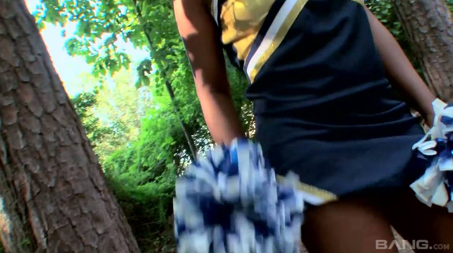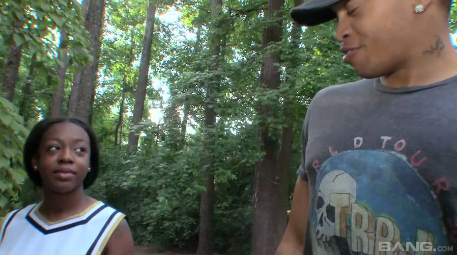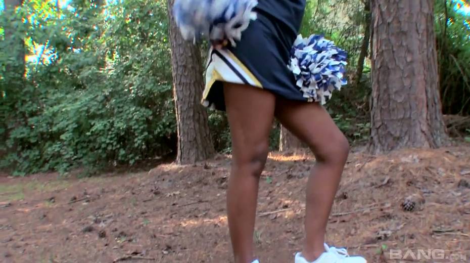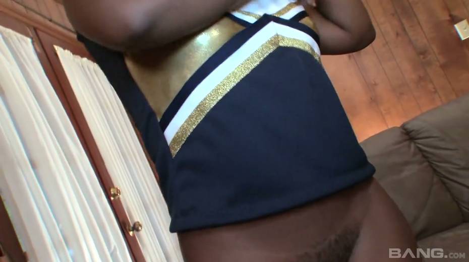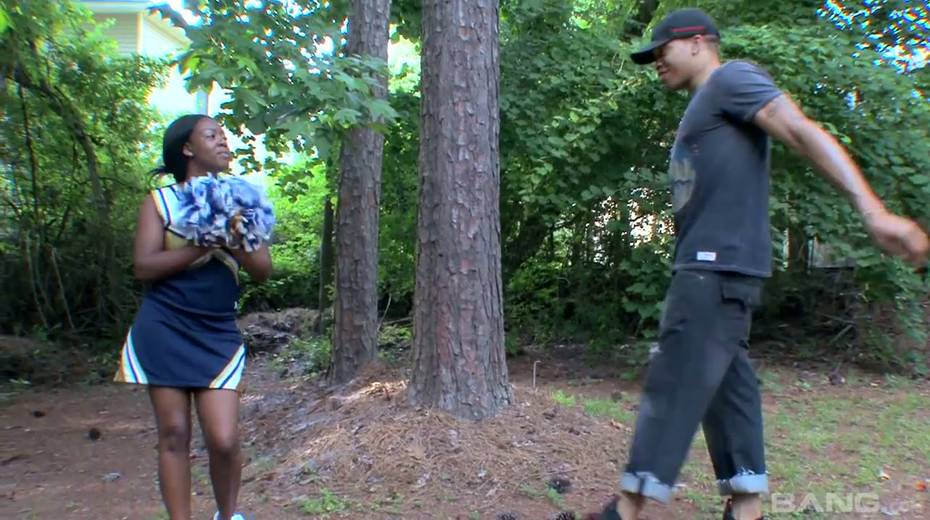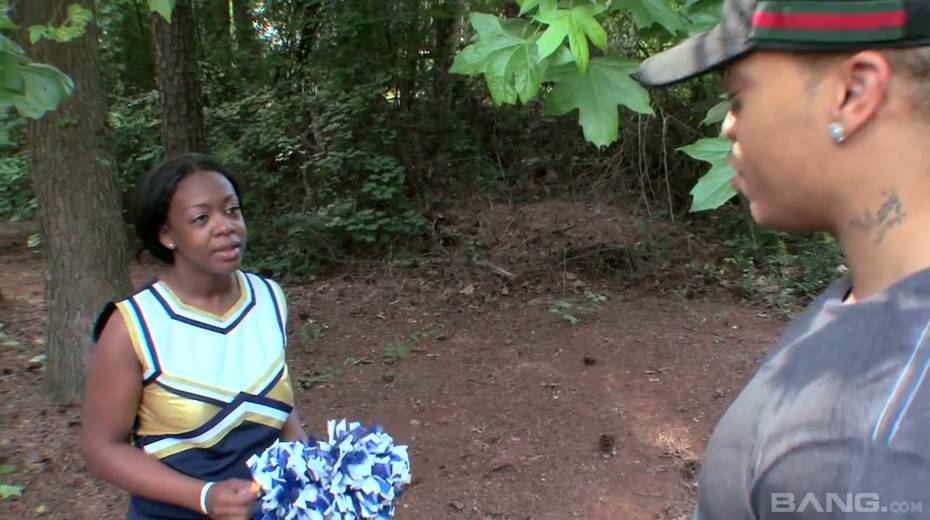 Ebony cheerleader Slim Goodies gets her pussy fucked by horny black fellow