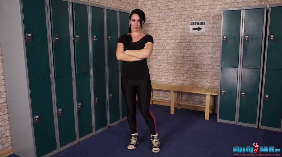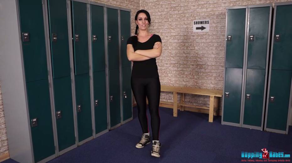 Slutty sport chick Jasmine Lau shows striptease in the locker room