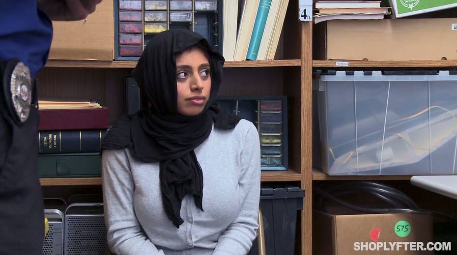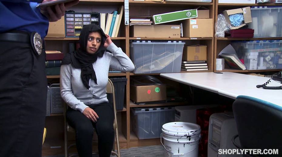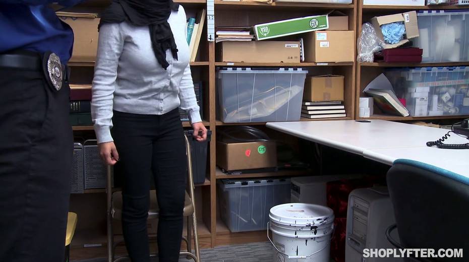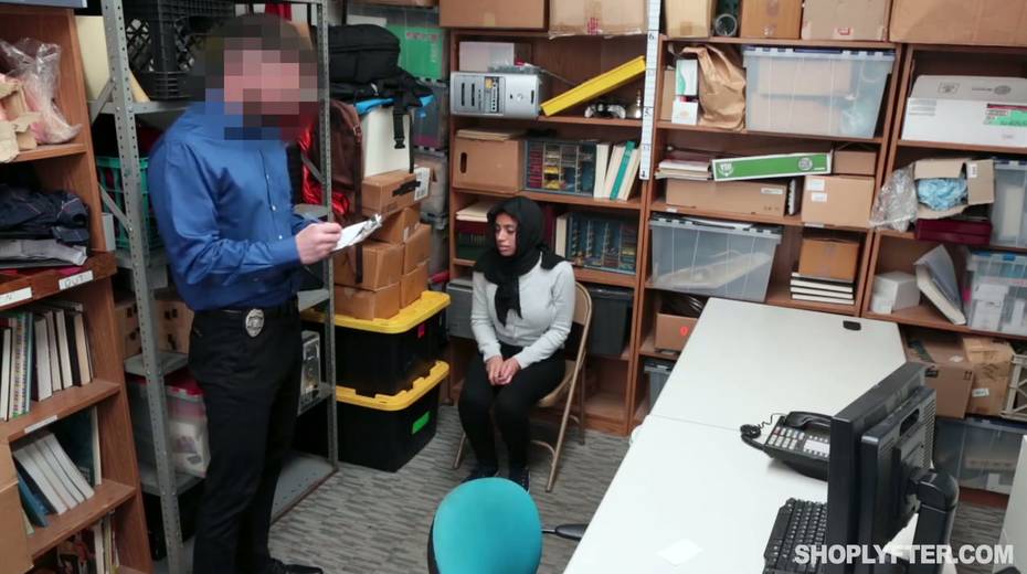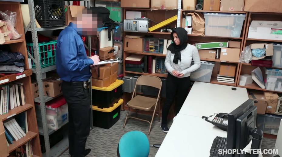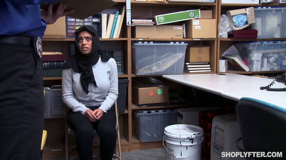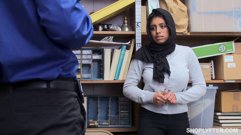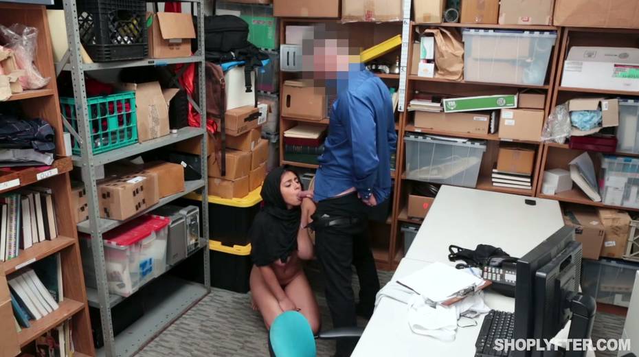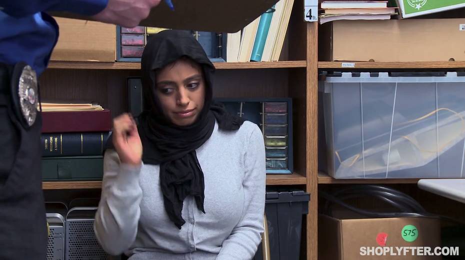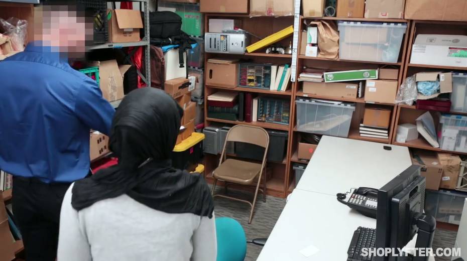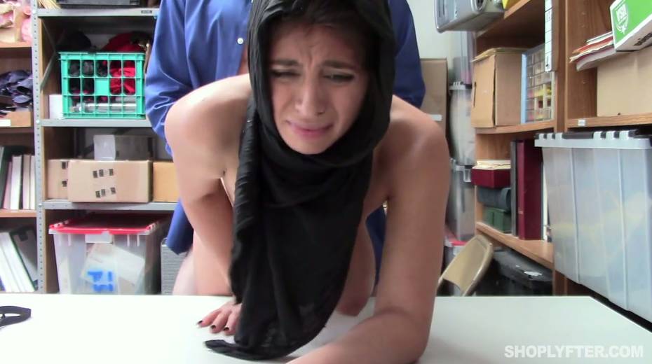 Shoplifting Arab babe in hijab Ella Knox gets her pussy punished in the back room