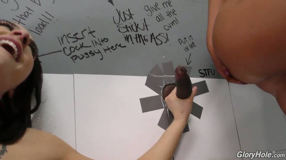 Concupiscent milf Chanel Preston and her kinky GF go wild in the glory hole room
