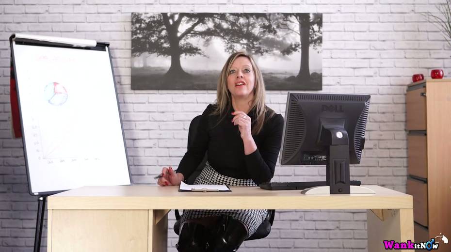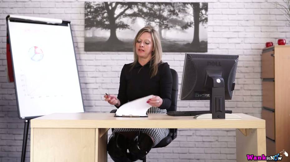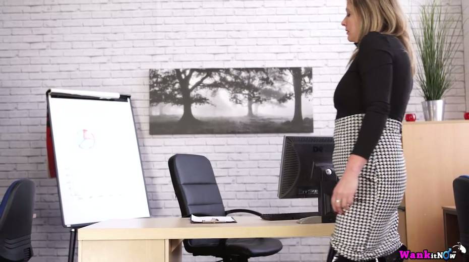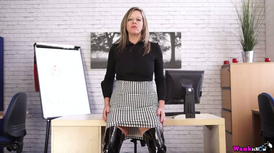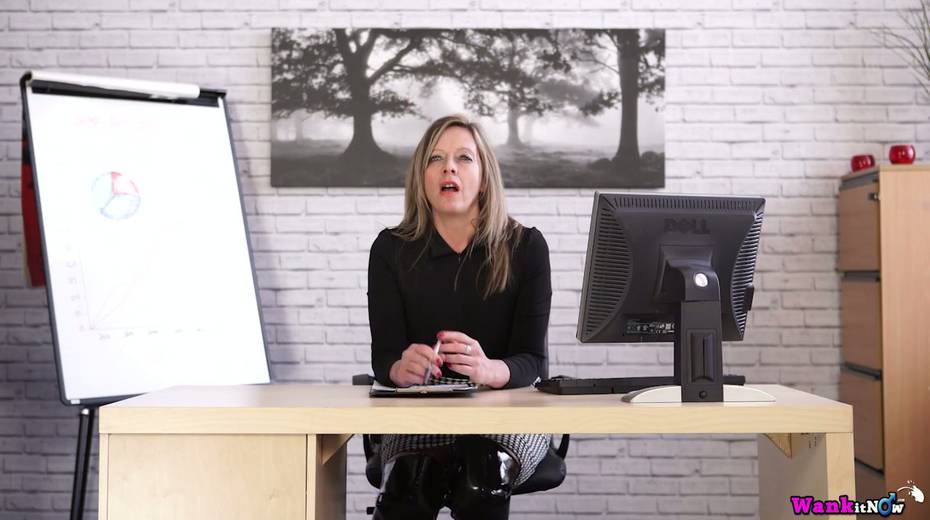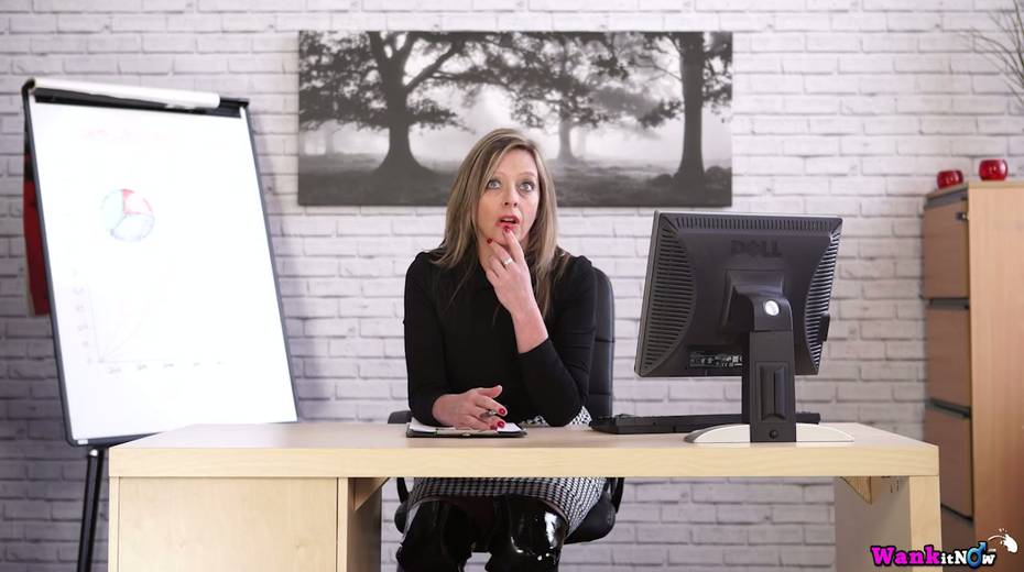 Office whore in latex outfit Lou Pierce is stripping in the office