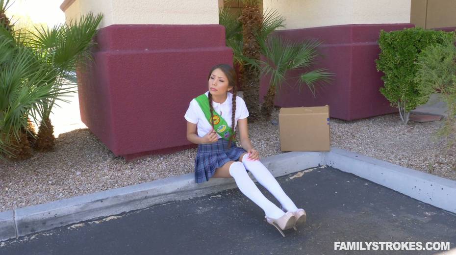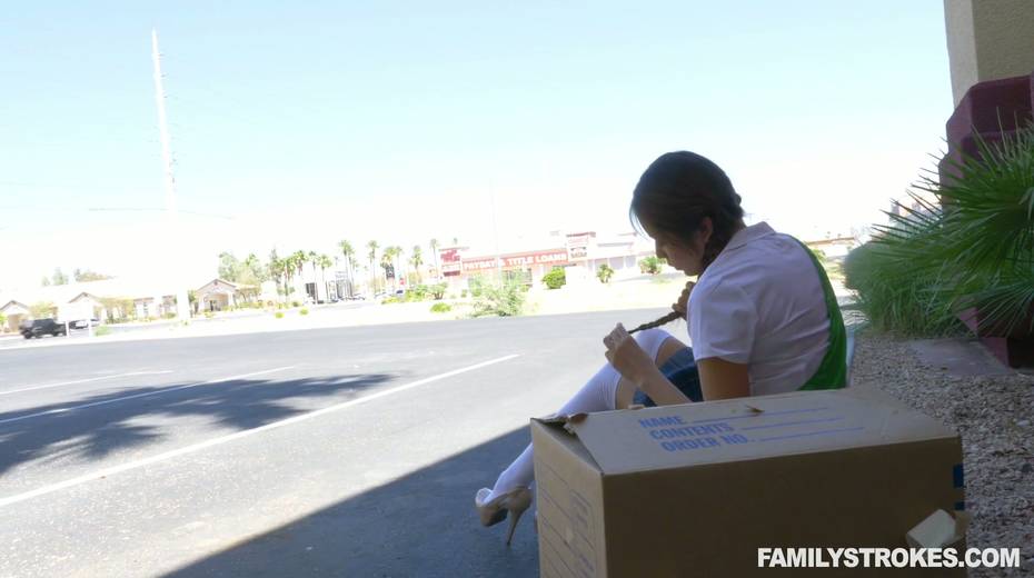 Cute pig-tailed chick Sami Parker is impaled on a hard meaty shlong
